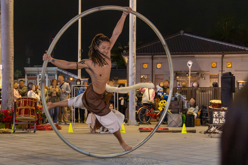 這天演出的是水晶球,看這水晶球在他手掌、手臂、背上平衡緩慢的滾動,但是卻又不會掉下來,搭配上和風的音樂,協調平衡的畫面,讓人目不轉睛。