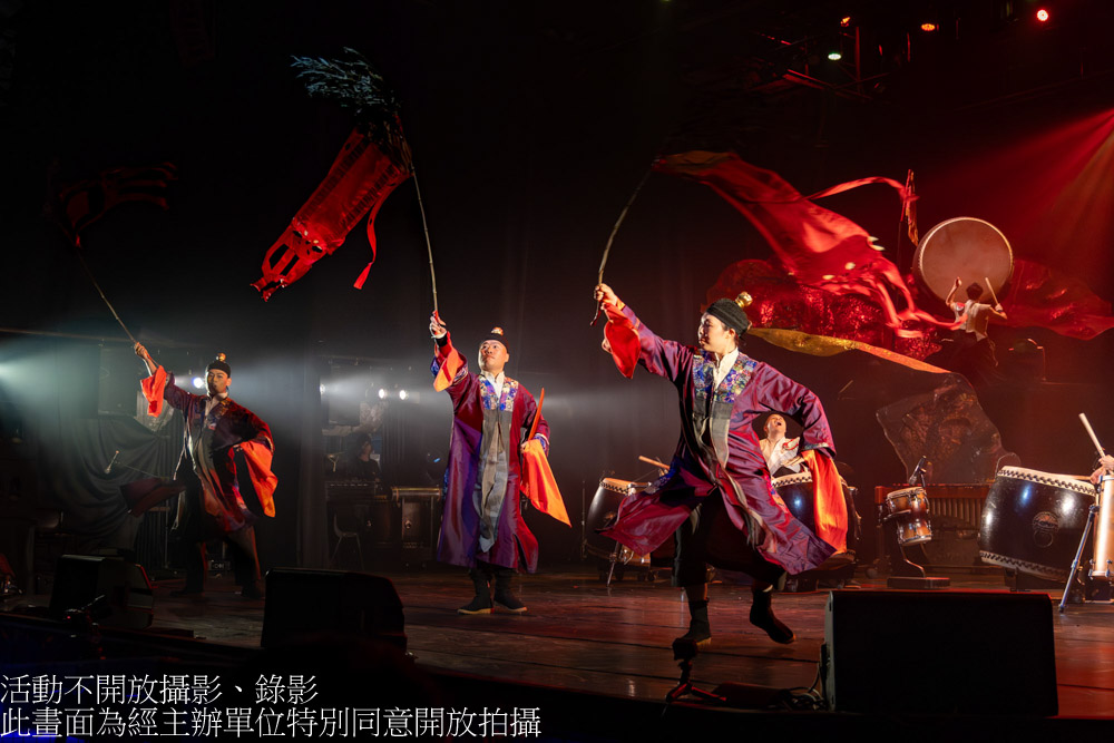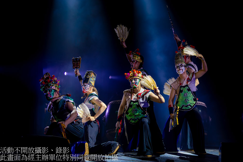《點將令》: 將台灣民間信仰中的「家將」元素與樂團結合,舞者肅穆的眼神與威儀的動作展現出極強的氣場,完美演繹了神威下的莊嚴美感。