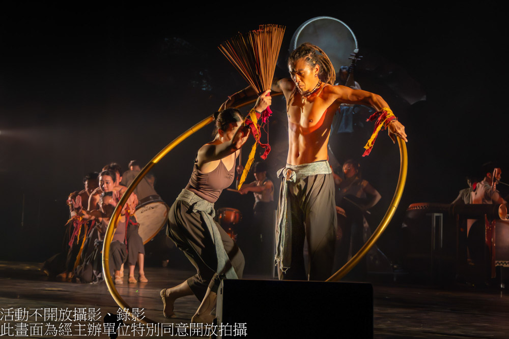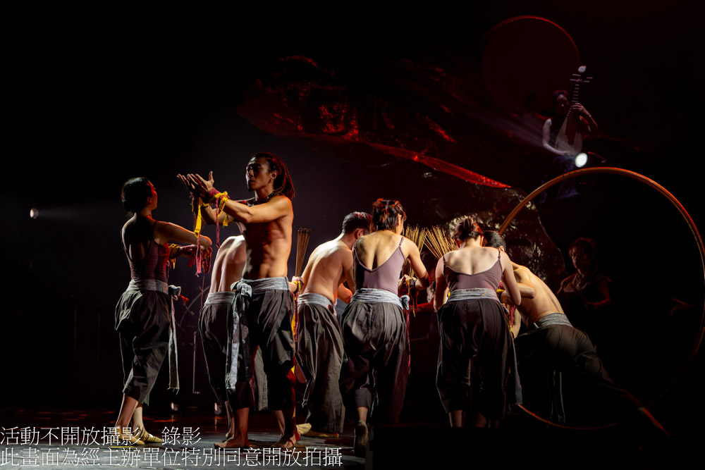 《孤棚祭》: 這是我印象很深刻的段落之一。表演將「搶孤」活動藝術化,舞者奮力沿著孤竿攀爬,那種追逐目標的韌性令人動容。